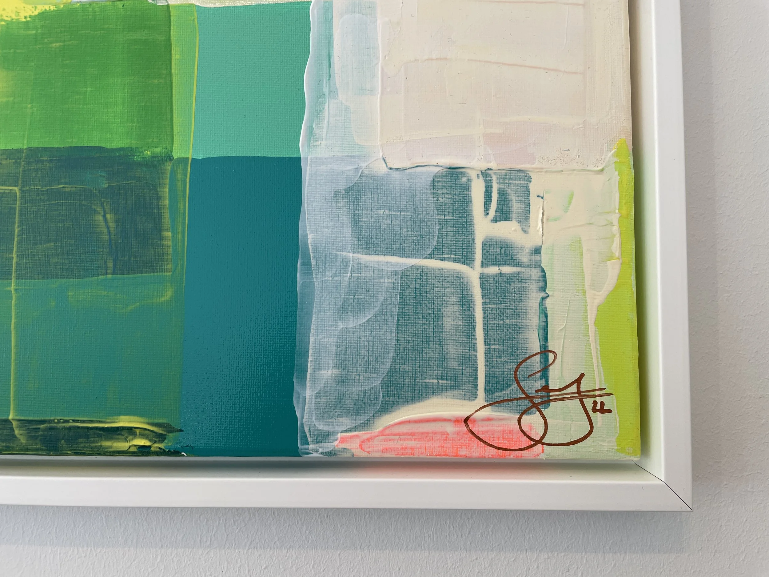 Dieser leichte Schattenfugenrahmen verleiht Ihrem Kunstwerk eine gewisse Weichheit und Professionalität. Das Holz wird verantwortungsbewusst von einem lokalen Ahrensburger Rahmungsunternehmen in Familienbetrieb bezogen, der Galerie Faerber.