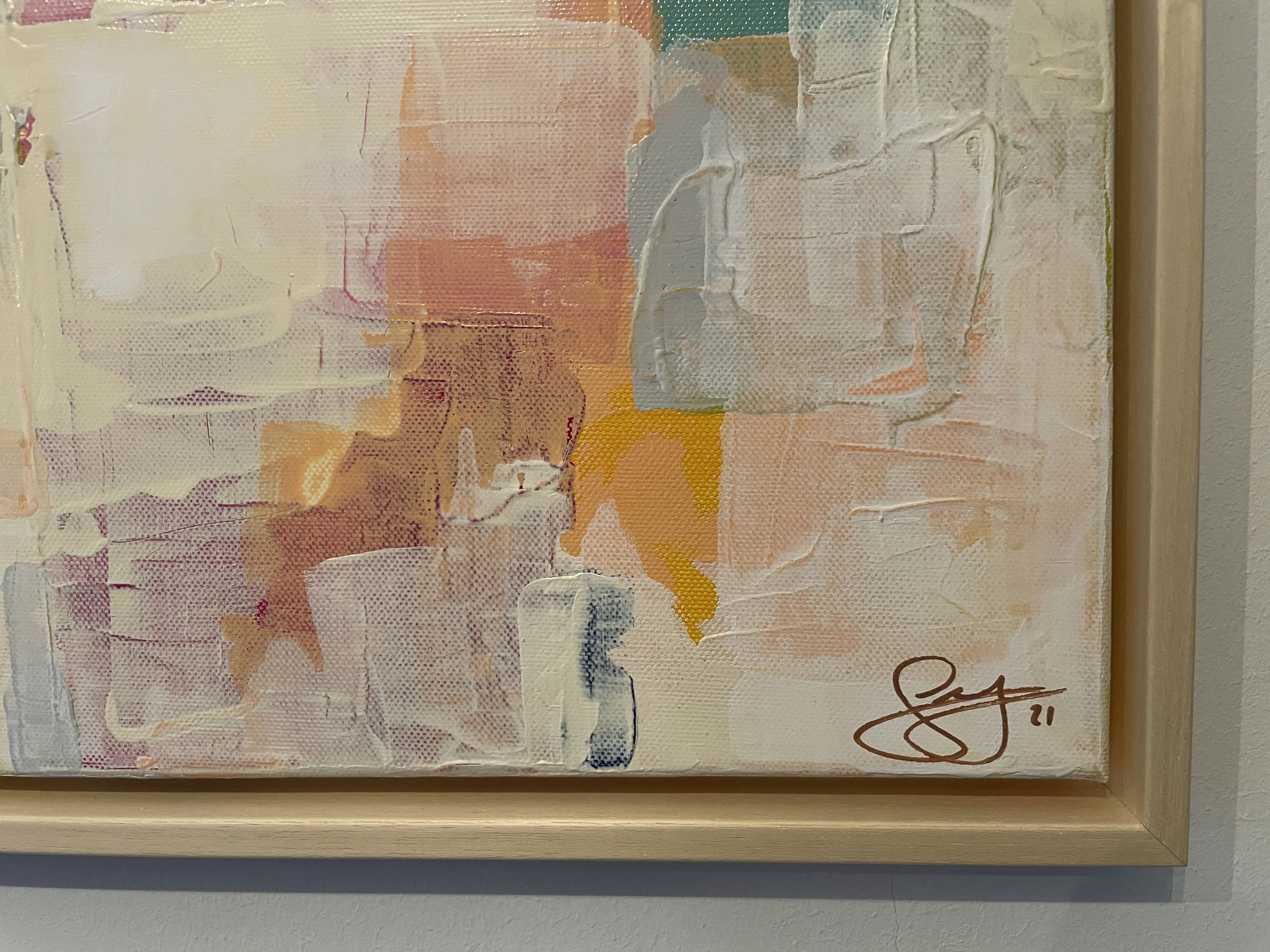 Der weiße Rahmen unterstreicht die weißen Elemente des Bildes und rundet das Kunstwerk damit professionell ab. Sprechen Sie mich gerne an, wenn Sie eine Beratung zur Rahmung wünschen.